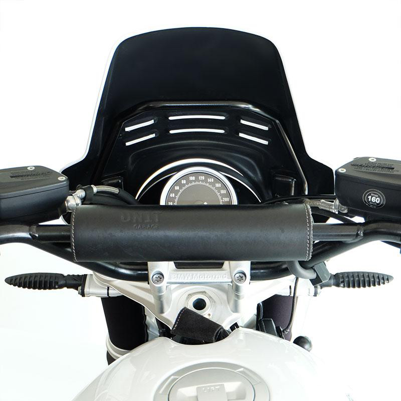 Soporte de navegador diseñado para el carenado Fenouil, fabricado en tubo de acero de 12 mm con acabado en polvo epoxi negro. Se fija a la base de dirección superior, para el montaje del navegador, en una zona central claramente visible.