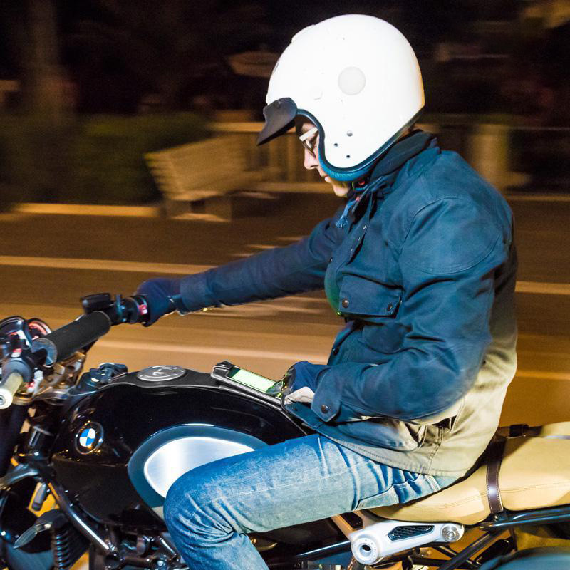 Este accesorio simplemente se monta en nuestras bandas de tanque. La ventana transparente en la parte frontal permite el uso del teléfono móvil con pantalla táctil sin quitar el dispositivo.