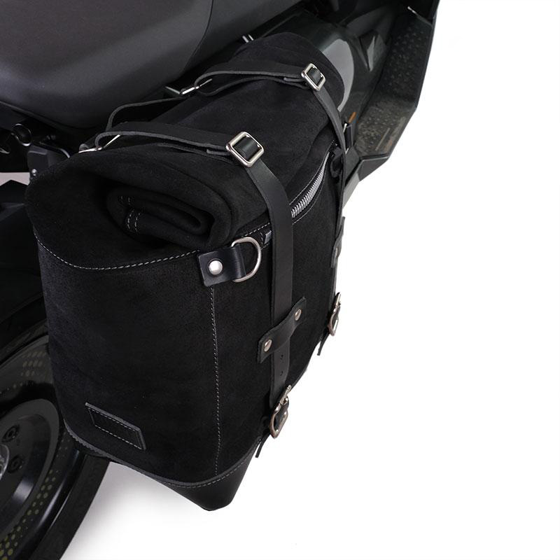 Se deriva de nuestra clásica bolsa U001, pero es mucho más espaciosa y tiene un núcleo extraíble de material rígido que mantiene su forma incluso cuando la bolsa está vacía. Con atención a los detalles más pequeños con acabados en cuero de 3 mm, simple y puro como los materiales con los que fue construido. Se conecta rápidamente a nuestro marco portabolsas con el sistema de liberación rápida ya incluido y montado en la parte posterior de la bolsa, que está equipada con un candado para bloquear en el propio marco. También puede albergar un casco jet en su interior, y está equipado con un gran bolsillo frontal con cremallera accesible desde el exterior. Para abrirlo no es necesario quitar las hebillas delanteras sino simplemente desplazarlas hacia un lado, de una forma muy rápida y práctica. Para proteger y organizar tu equipaje, te recomendamos utilizar la bolsa multiusos Khali light de 18L en el interior