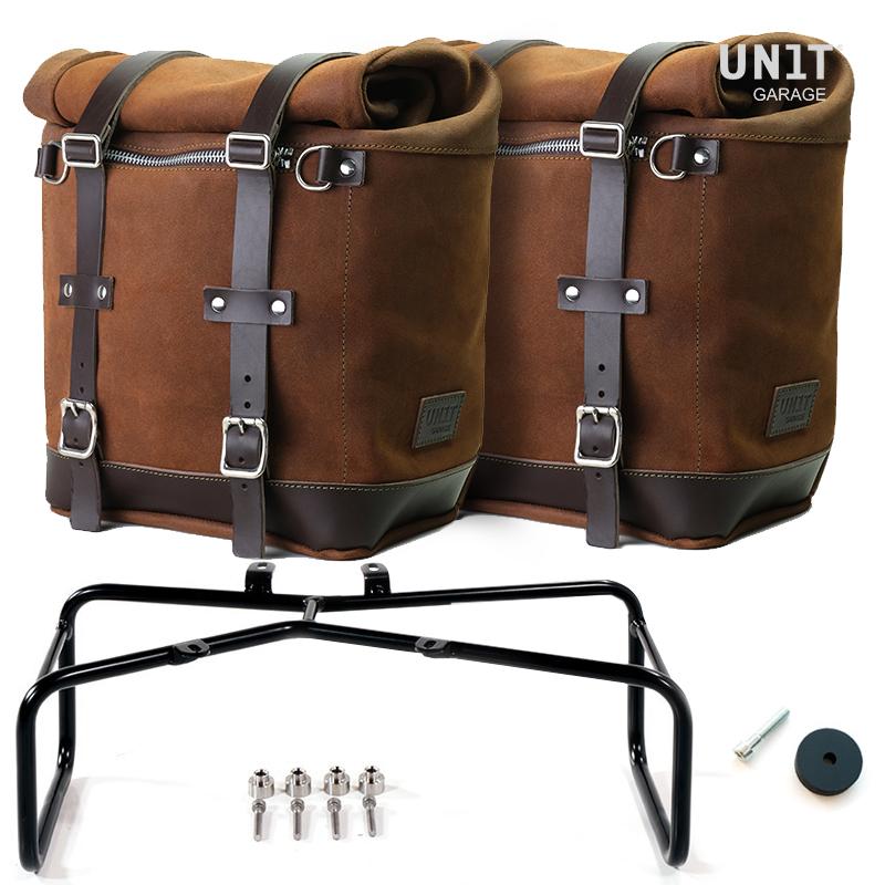 Deriva de nuestro clásico bolso U002, pero es mucho más espacioso y tiene en su interior un núcleo extraíble de material rígido que mantiene su forma incluso cuando el bolso está vacío. Atención al más mínimo detalle con acabados en piel de 3 mm, simple y pura como los materiales con los que fue construida. Se fija rápidamente a nuestro marco portabolsas con el sistema de liberación rápida ya incluido y montado en la parte posterior de la bolsa, que está equipado con un candado para bloquear en el propio marco. También puede albergar un casco jet en su interior y está equipado con un gran bolsillo frontal con cremallera accesible desde el exterior. Para abrirlo no es necesario quitar las hebillas delanteras sino simplemente moverlas hacia un lado, de forma muy rápida y práctica. Para proteger y organizar tu equipaje te recomendamos utilizar en su interior la bolsa ligera multiusos Khali de 18L.