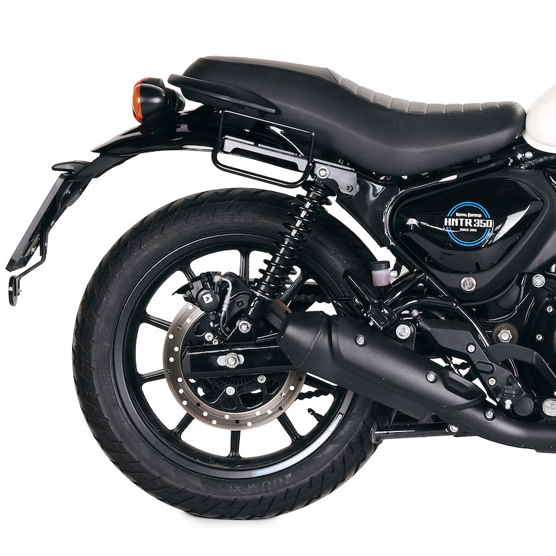 Diseñado sobre el bastidor Royal Enfield, se integra perfectamente con el resto de la moto y está fabricado en acero tratado con un acabado en polvo epoxi negro mate. Preparado para alojar nuestro sistema de fijación rápida, bonito y minimalista incluso cuando el bolso no está montado. Se puede utilizar cómodamente con un pasajero a bordo.
