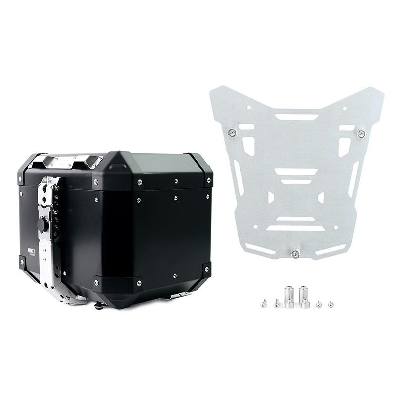 Fabricado en aluminio anodizado negro de 5 mm de espesor, permite el montaje de nuestro top case código: AL15_BL en el portaequipajes original BMW R1300GS ADV.