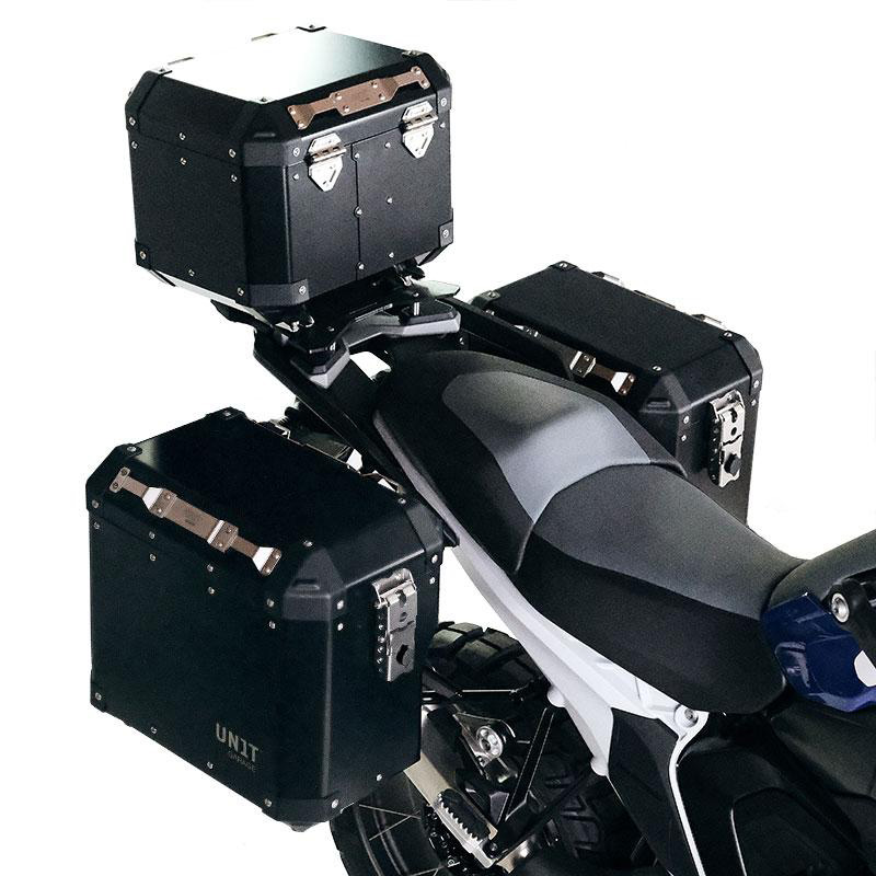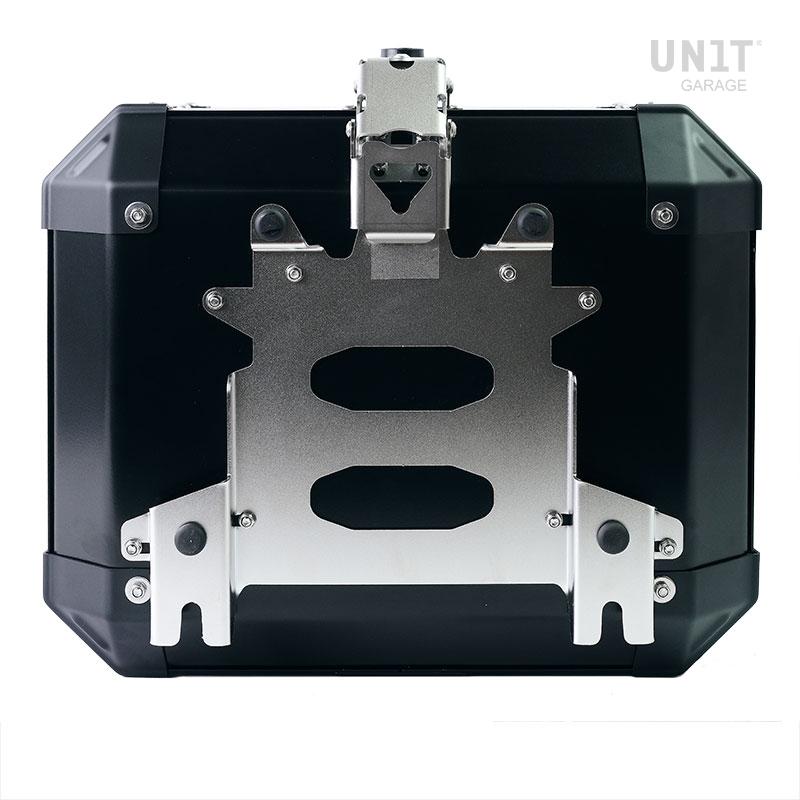 Fabricado en aluminio anodizado negro de 5 mm de espesor, permite el montaje de nuestro top case código: AL15_BL en el portaequipajes original BMW R1300GS.