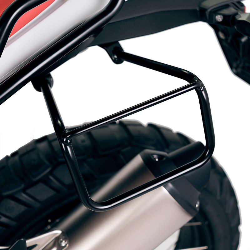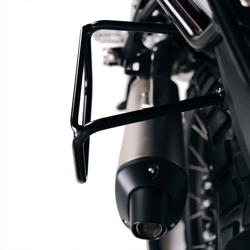 Diseñado sobre el cuadro BMW R12 G/S, se integra perfectamente con el resto de la moto. Preparado para alojar nuestro sistema de fijación rápida, bonito y minimalista incluso cuando el bolso no está montado. Se puede utilizar cómodamente con un pasajero a bordo.