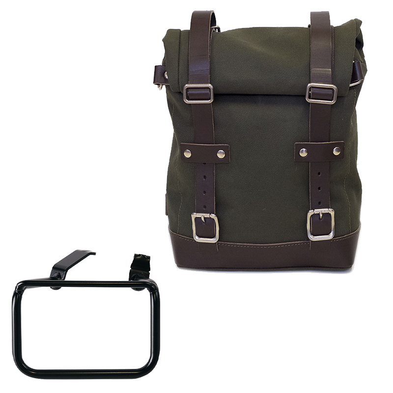 Diseñado sobre el cuadro BMW R12 G/S, se integra perfectamente con el resto de la moto. Preparado para alojar nuestro sistema de fijación rápida, bonito y minimalista incluso cuando el bolso no está montado. Se puede utilizar cómodamente con un pasajero a bordo.