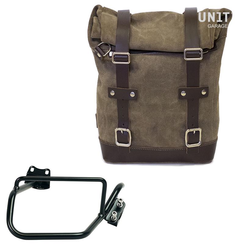 Tratado con cera que lo hace resistente al agua. Con atención a los detalles más pequeños con acabados en cuero de 3 mm, simple y puro como los materiales con los que fue construido. Se engancha rápidamente a nuestro marco portabolsas con el sistema de liberación rápida aplicado a la parte posterior de la bolsa que está equipada con un candado para bloqueo. En su interior puede albergar un portátil de 15", está equipado con un gran bolsillo con cremallera para teléfono y documentos.