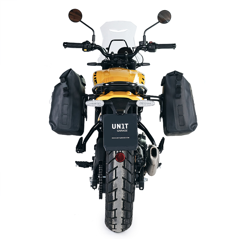 Diseñado sobre el chasis Royal Enfield. Se integra perfectamente con el resto de la moto. Listo para acomodar nuestro sistema de fijación rápida, hermoso y minimalista incluso cuando la bolsa no está montada. Se puede utilizar cómodamente con el pasajero a bordo y es compatible con nuestras bacas de techo.
