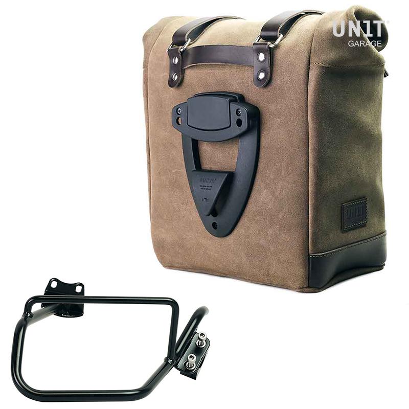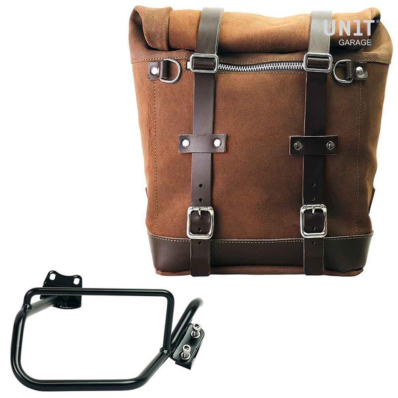 Se deriva de nuestra clásica bolsa U002, pero es mucho más espaciosa y tiene un núcleo extraíble en material rígido en el interior que mantiene su forma incluso cuando la bolsa está vacía. Con atención a los detalles más pequeños con acabados en cuero de 3 mm, simple y puro como los materiales con los que fue construido. Se engancha rápidamente al marco de nuestra bolsa con el sistema de liberación rápida ya incluido y montado en la parte posterior de la bolsa, que está equipada con una cerradura para bloquear en el marco mismo. También puede albergar un casco jet en su interior, y está equipado con un gran bolsillo frontal con cremallera accesible desde el exterior. Para abrirlo no es necesario quitar las hebillas delanteras sino simplemente desplazarlas hacia un lado, de una forma muy rápida y práctica. Para proteger y organizar tu equipaje, te recomendamos utilizar en su interior la bolsa ligera multiusos Khali de 18L.