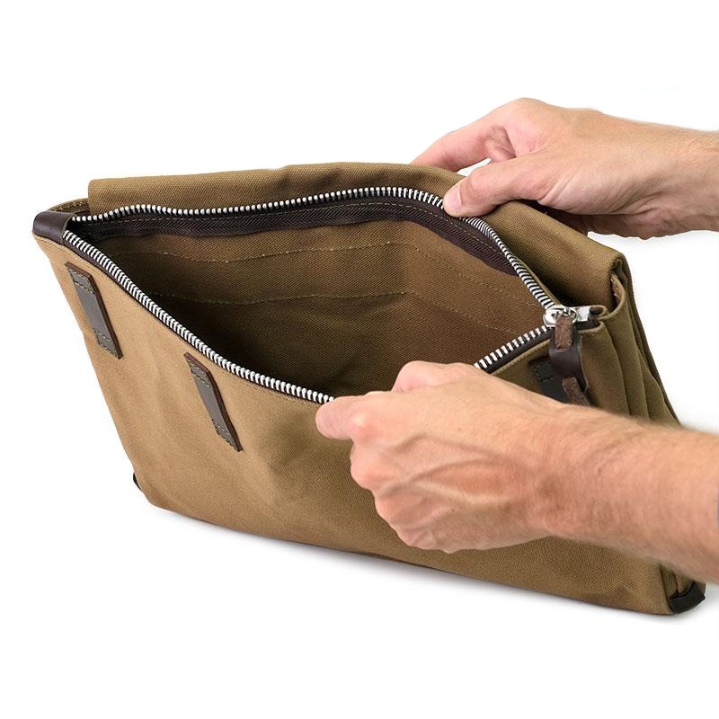 En un estilo vintage perfecto, es versátil y se puede usar de varias maneras, ya sea fijado a la motocicleta o transportado sobre el hombro o como una riñonera con bucles en el área posterior. Atención al detalle con acabados de cuero de 3 mm. Puede alojar una computadora portátil de 15 "en el interior.