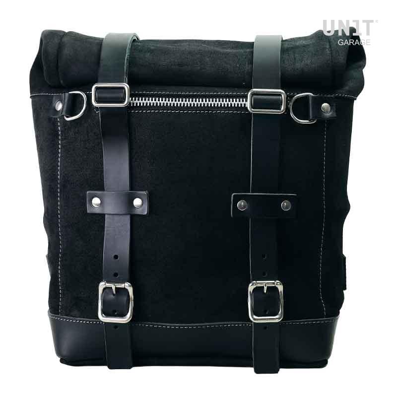 Bolsa lateral Scram extensible de 22 a 30 Litros hecha a mano en Italia en robusta piel serraje impermeable de primera calidad.