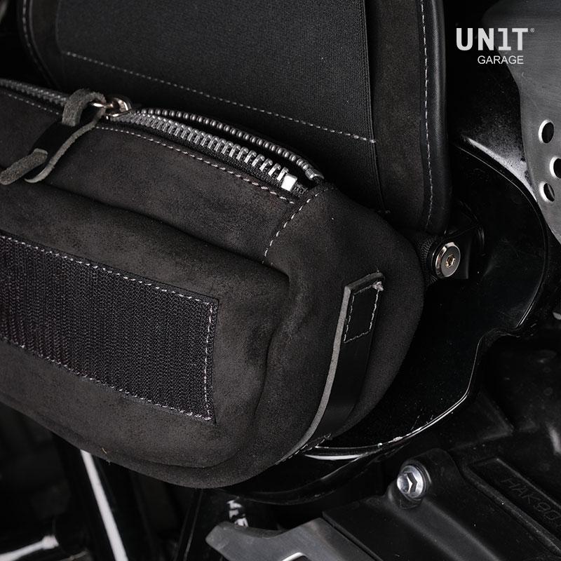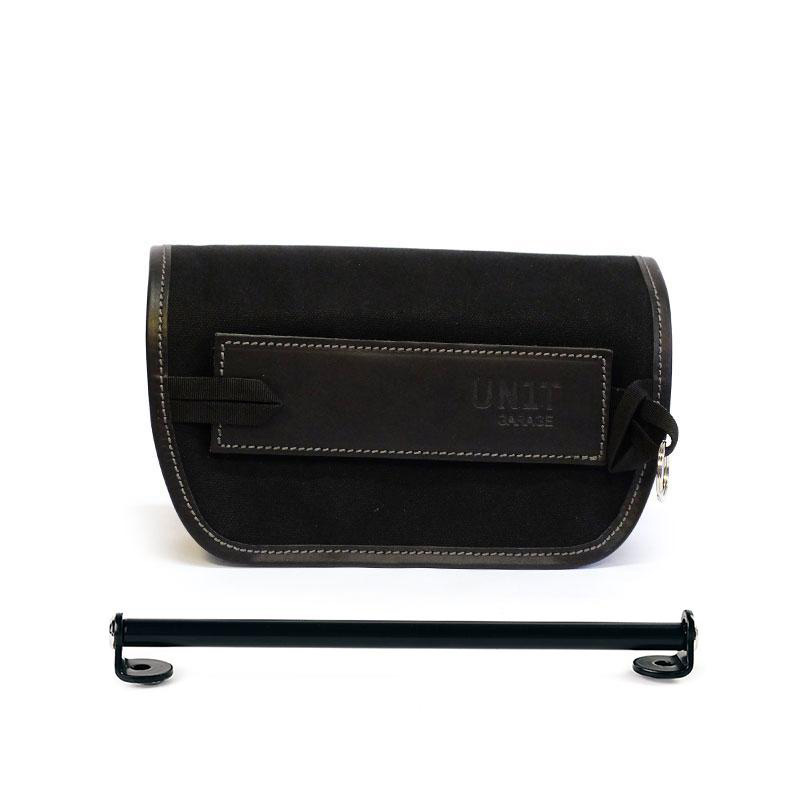 Este soporte de acero con recubrimiento de polvo epoxi le permite montar nuestras bolsas y rematar perfectamente el área del paso de escape alto en el panel lateral.