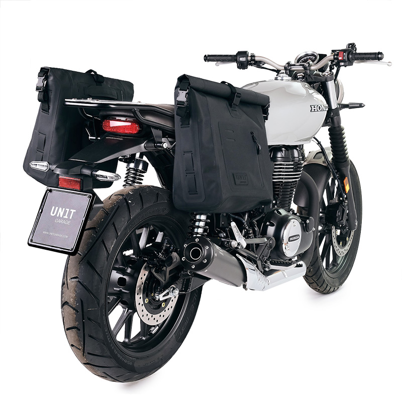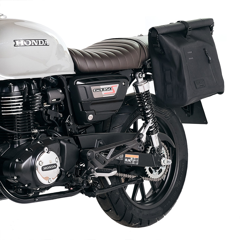Diseñado sobre el cuadro Honda GB350S se integra perfectamente con el resto de la moto. Preparado para alojar nuestro sistema de fijación rápida, bonito y minimalista incluso cuando el bolso no está montado. Se puede utilizar cómodamente con un pasajero a bordo.