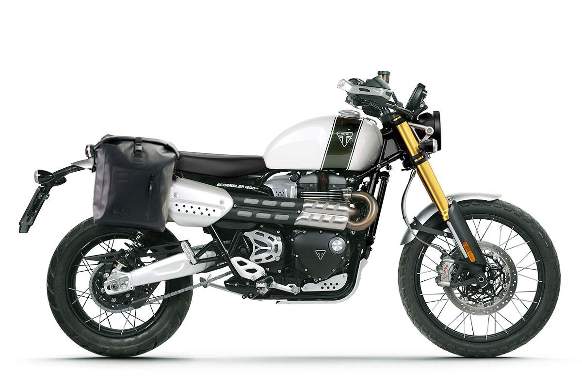 Diseñado sobre el cuadro Triumph, se integra perfectamente con el resto de la bicicleta. Listo para acomodar nuestro sistema de fijación rápida, hermoso y minimalista incluso cuando la bolsa no está montada. Se puede utilizar cómodamente con el pasajero a bordo.