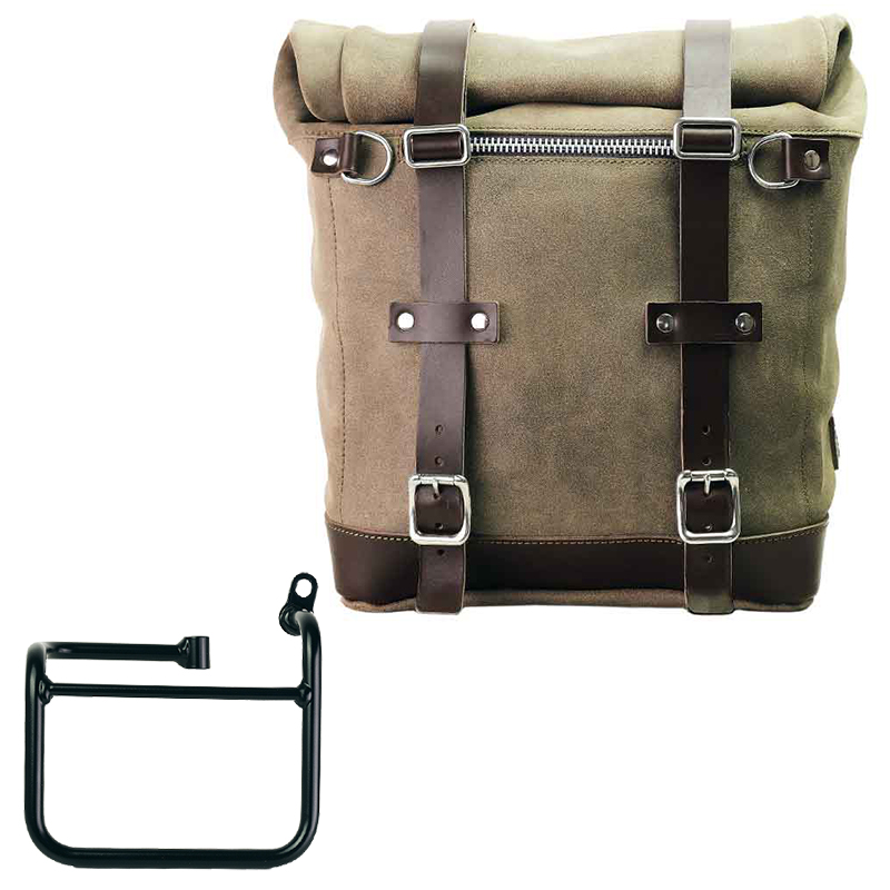 Bolsa lateral Scram extensible de 22 a 30 Litros hecha a mano en Italia en robusta piel serraje impermeable de primera calidad.