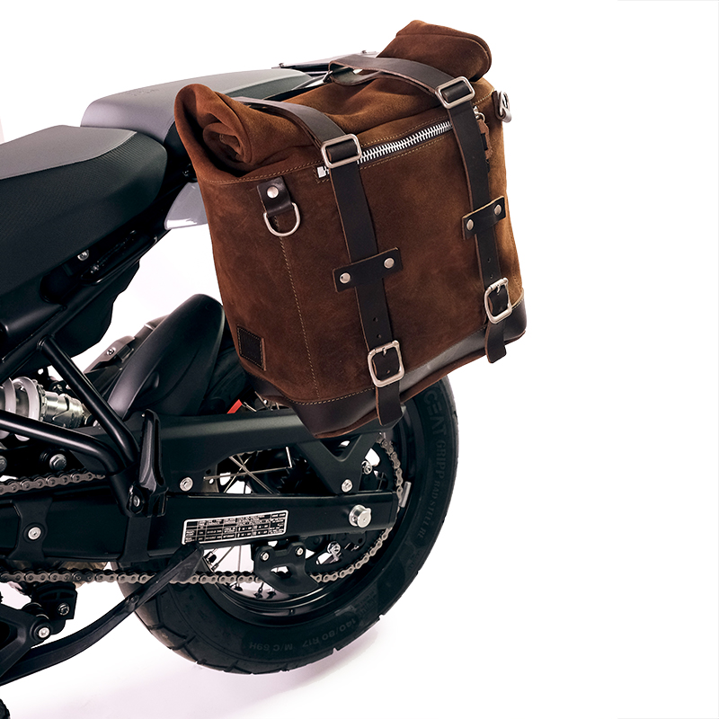 Diseñado sobre el chasis Royal Enfield. Se integra perfectamente con el resto de la moto. Listo para acomodar nuestro sistema de fijación rápida, hermoso y minimalista incluso cuando la bolsa no está montada. Se puede utilizar cómodamente con el pasajero a bordo y es compatible con nuestras bacas de techo.