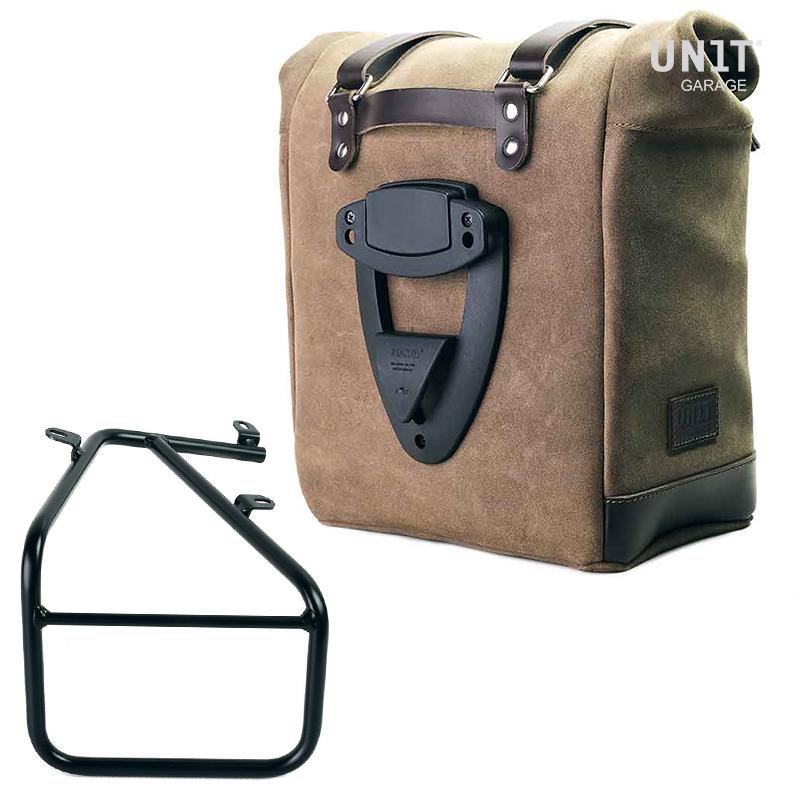 Armazón fabricado en acero tratado con acabado negro mate con polvos episódicos. Se monta en el lado derecho de la bicicleta. Diseñado para nuestro kit Sportail, se integra perfectamente con el resto de la moto. Listo para albergar nuestro sistema de fijación rápido, hermoso y mínimo, incluso cuando la bolsa no está montada. Viene completo con tornillos, y la bolsa se puede usar cómodamente con el pasajero a bordo.