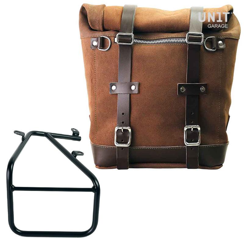 Se deriva de nuestra clásica bolsa U002, pero es mucho más espaciosa y tiene un núcleo extraíble en material rígido en el interior que mantiene su forma incluso cuando la bolsa está vacía. Con atención a los detalles más pequeños con acabados en cuero de 3 mm, simple y puro como los materiales con los que fue construido. Se conecta rápidamente a nuestro marco portabolsas con el sistema de liberación rápida ya incluido y montado en la parte posterior de la bolsa, que está equipada con un candado para bloquear en el propio marco. También puede albergar un casco jet en su interior, y está equipado con un gran bolsillo frontal con cremallera accesible desde el exterior. Para abrirlo no es necesario quitar las hebillas delanteras sino simplemente desplazarlas hacia un lado, de una forma muy rápida y práctica. Para proteger y organizar tu equipaje, te recomendamos utilizar en su interior la bolsa multiusos Khali light de 18L.