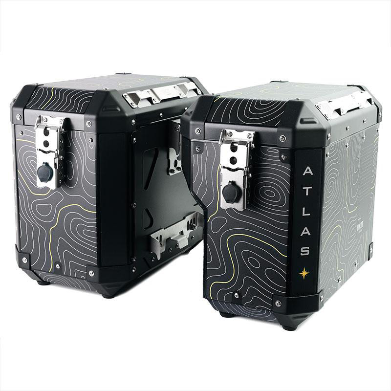 - La bolsa Atlas 47L contiene un casco integral - Cuerpo y tapa de la bolsa enaleación de aluminio de alta resistencia de 1,5 mm de espesor. Parte trasera en el área de acoplamiento 3 mm - Acero inoxidable de alta calidad para cerraduras, bisagras, tornillos: accesorios galvanizados y electropulidos - Protectores de esquinas ABS reemplazables en caso de caída