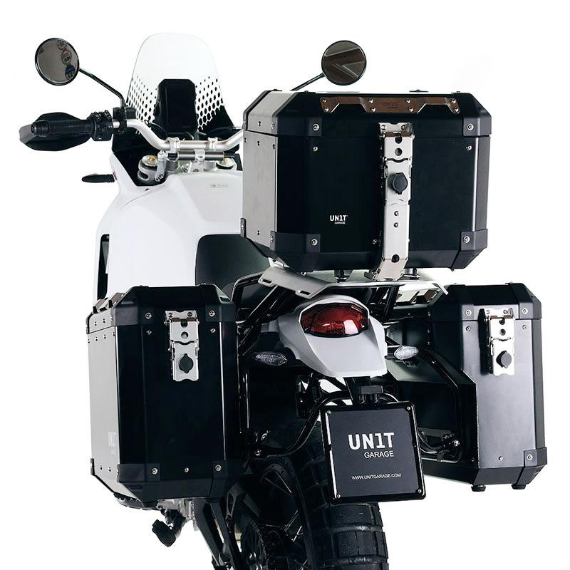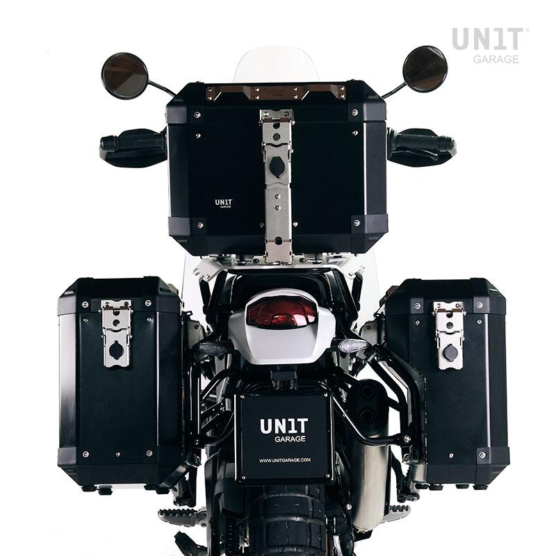 Queríamos bolsos elegantes, clásicos y resistentes, con hermosas bisagras de acero y cuidados detalles: detalles creados para la aventura y resistentes a todas las condiciones. La tapa está provista de fijaciones en el interior y se incluye una goma elástica para usar como soporte de guantes, documentos y objetos pequeños. La sujeción de la tapa es de cuero con broches desmontables. El cierre está diseñado para alojar un candado extra además del suministrado. El cuerpo de la caja está totalmente forrado con neopreno resistente de 2,5 mm capaz de absorber los golpes. Las bisagras, cerraduras y todos los detalles son de acero inoxidable electropulido, algo que no encontrarás en ningún producto similar del mercado. Las esquinas son de ABS resistente que se puede reemplazar en caso de caída, al igual que cada uno de los componentes. Nuestras bolsas Alu están completamente Made in Italy, ensambladas a mano una por una.