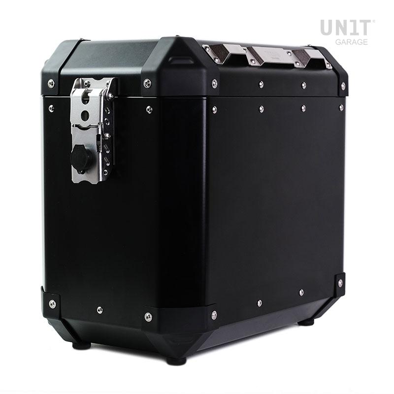 - La bolsa Atlas 47L contiene un casco integral - Cuerpo y tapa de la bolsa en aleación de aluminio de alta resistencia de 1,5 mm de espesor. Parte trasera en la zona de enganche 3 mm - Acero inoxidable de alta calidad para cerraduras, bisagras, tornillos: accesorios electropulidos y galvanizados - Protectores de esquinas de ABS reemplazables en caso de caída