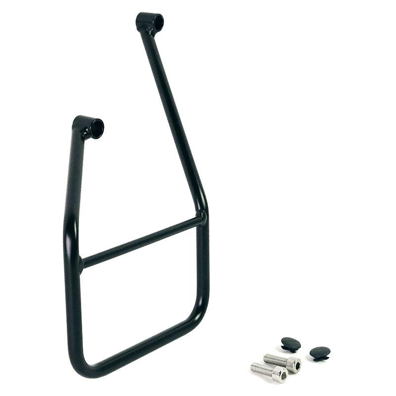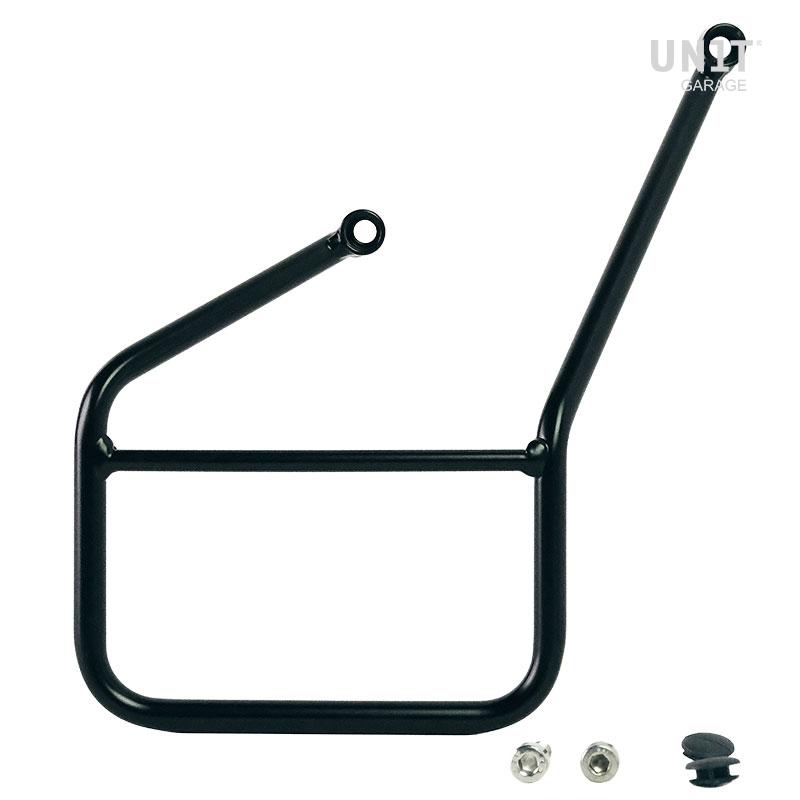Marco izquierdo fabricado en acero tratado con acabado en polvo epoxi negro mate.