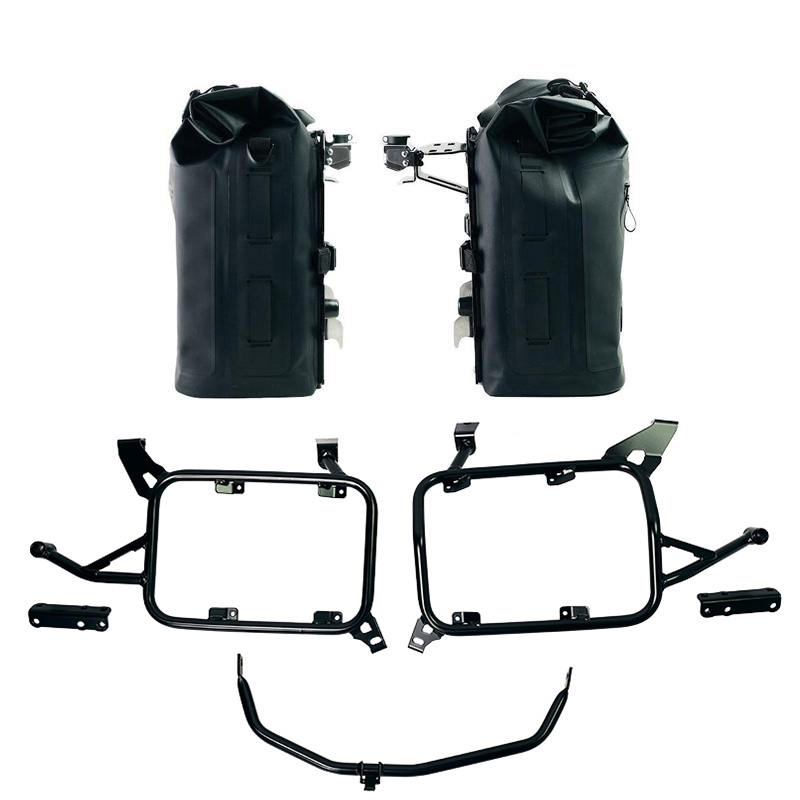 Par de alforjas laterales Khali 100% impermeables con placa trasera de aluminio + cierre rápido y cerradura de acero inoxidable