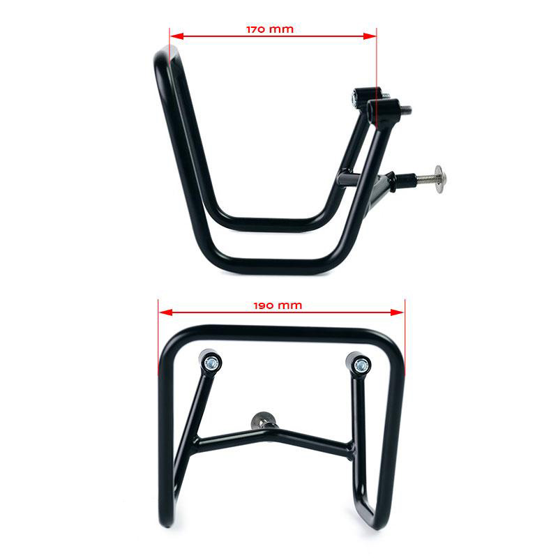 Diseñado sobre el cuadro Honda CL, se integra perfectamente con el resto de la moto. Se puede utilizar cómodamente con el pasajero a bordo y es compatible con nuestro portaequipajes. Puede acomodar rollos de varios tipos y tamaños y es muy útil para transportar tiendas de campaña u otros accesorios de camping.