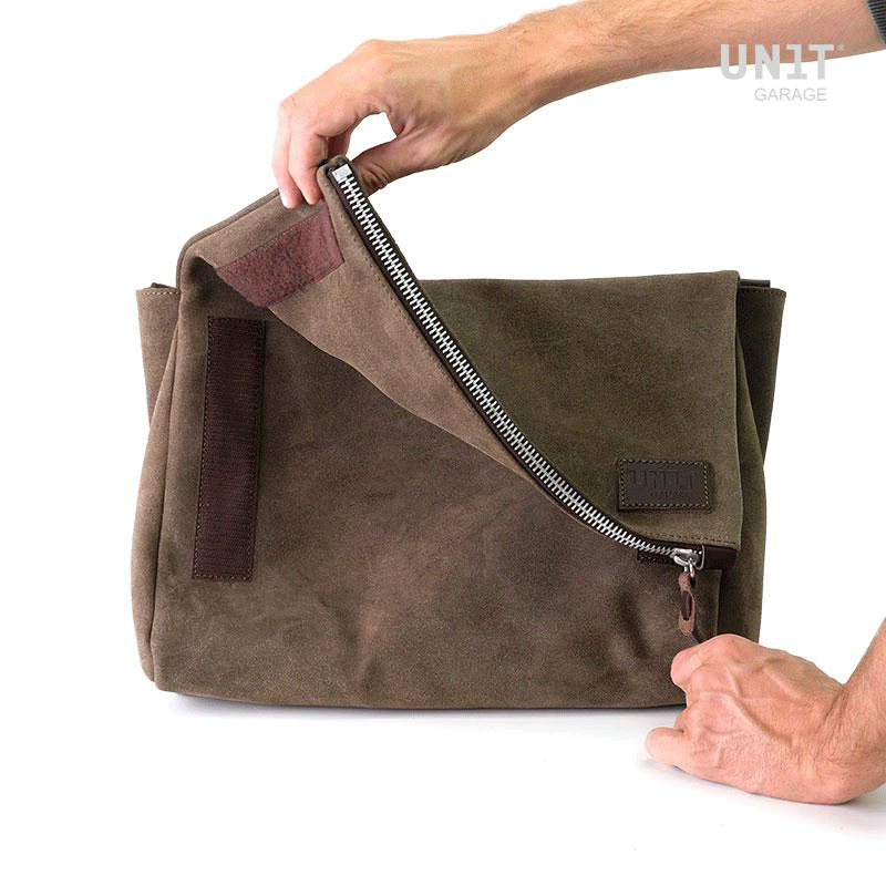 En un estilo vintage perfecto, es versátil y se puede usar de varias maneras, ya sea fijado a la motocicleta o transportado sobre el hombro o como una riñonera con bucles en el área posterior. Con atención a los detalles más pequeños con acabados de cuero de 3 mm, puede alojar una computadora portátil de 15 "en el interior.
