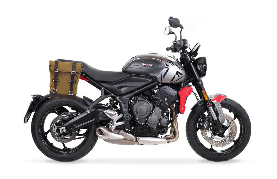 Diseñado sobre el cuadro Triumph, se integra perfectamente con el resto de la bicicleta. Listo para acomodar nuestro sistema de fijación rápida, hermoso y minimalista incluso cuando la bolsa no está montada. Se puede utilizar cómodamente con el pasajero a bordo.
