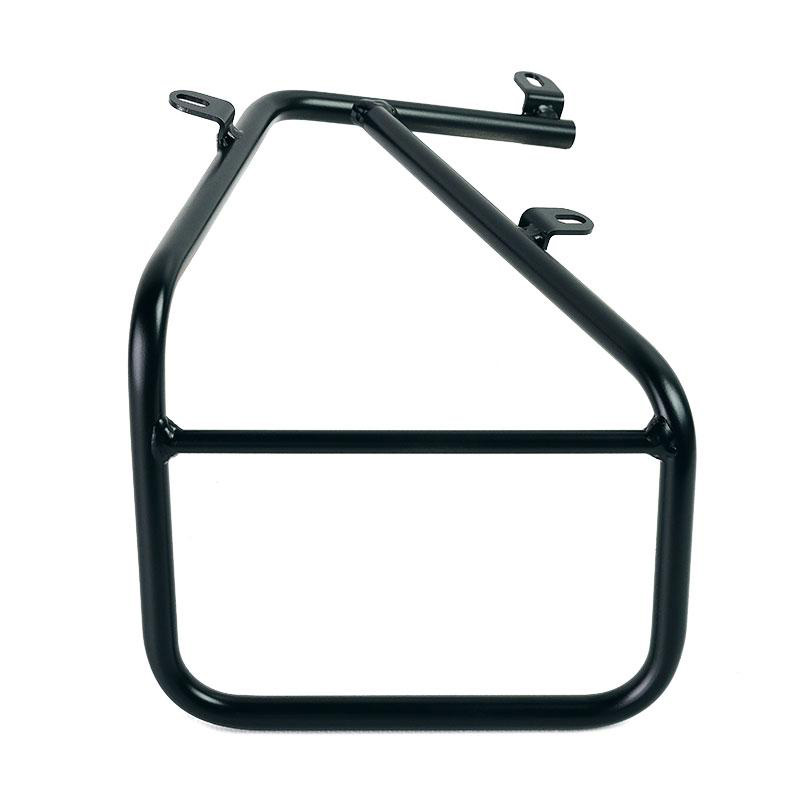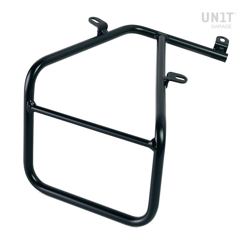 Armazón fabricado en acero tratado con acabado negro mate con polvos episódicos. Se monta en el lado derecho de la bicicleta. Diseñado para nuestro kit Sportail, se integra perfectamente con el resto de la moto. Listo para acomodar nuestro sistema de fijación rápido, hermoso y mínimo, incluso cuando la bolsa no está montada. Viene completo con tornillos, y la bolsa se puede usar cómodamente con el pasajero a bordo.