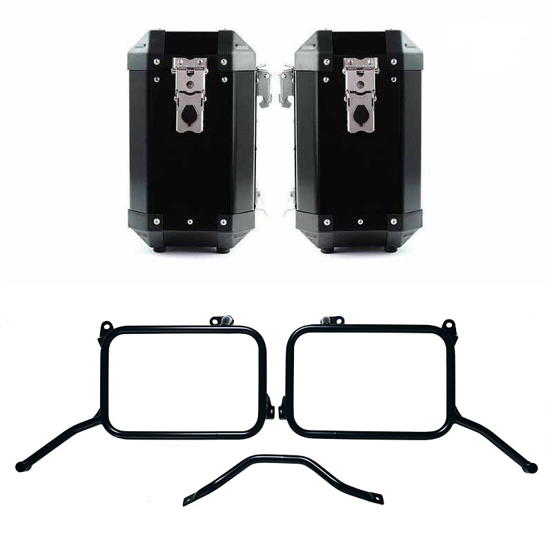 Este completo conjunto de cuadros fabricado en acero inoxidable se integra perfectamente con el resto de la bicicleta. Viene completo con kit de montaje y tornillos, no se requieren modificaciones. Se puede montar en la motocicleta en combinación con nuestros portaequipajes (código: 3805_BL) o con el portaequipajes original o accesorios Royal Enfield. Se pueden utilizar cómodamente con un pasajero a bordo.
