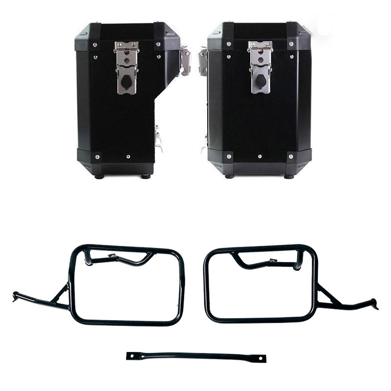 Este completo conjunto de cuadros fabricados en acero inoxidable se integra perfectamente con el resto de la bicicleta. Viene completo con kit de montaje y tornillos, no requiere modificaciones. Se puede montar en la moto en combinación con nuestros portaequipajes (código: 4307) o el asa del pasajero (código: 4304). Se pueden utilizar cómodamente con el pasajero a bordo.