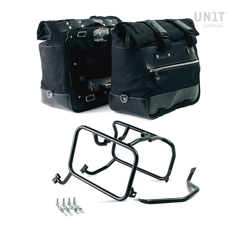 Par de bolsas laterales Cult en algodón impermeable con placas traseras de aluminio + enganche rápido y cerradura de acero inoxidable
