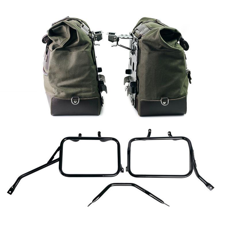 Par de bolsas laterales Cult de algodón impermeable con placas traseras de aluminio + enganche rápido y cierre de acero inoxidable