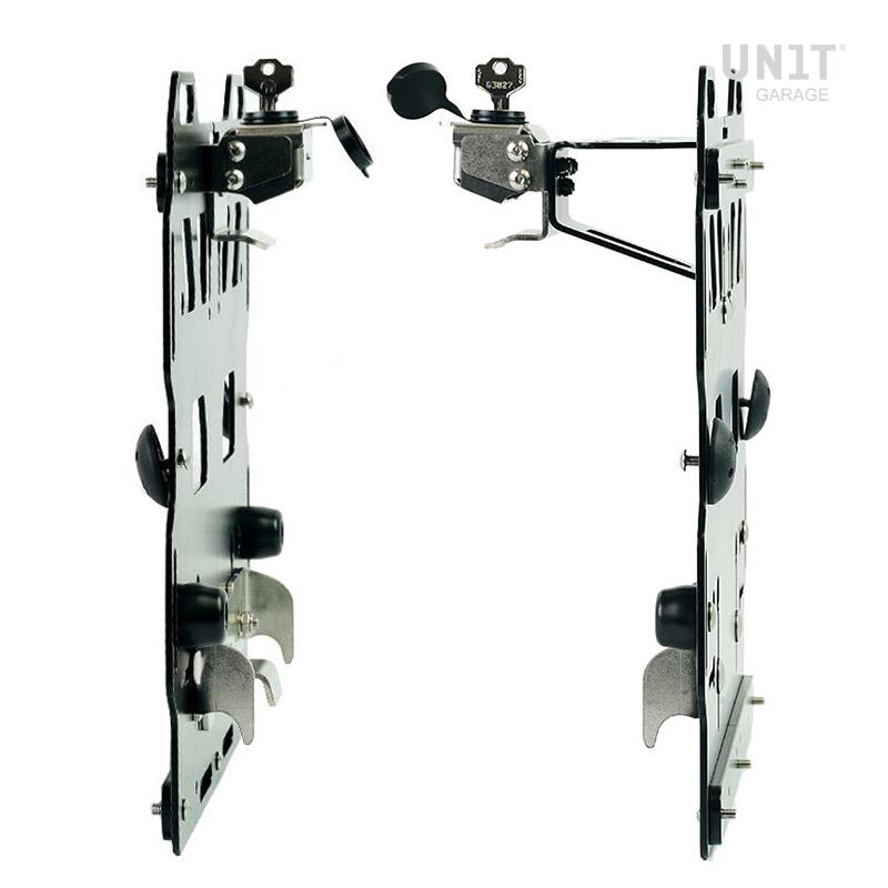 Se montan en segundos a los marcos de tubo Atlas clásicos para bolsas de aluminio sin la adición de adaptadores adicionales, todo está incluido.También se pueden ajustar fácilmente para adaptarse a la mayoría de los marcos de tubo de 18 mm de diámetro del mercado, como los marcos OEM BMW.Para uso extremo recomendamos usar los ganchos en la placa y las presillas laterales para fijar bandas horizontales adicionales como nuestro código UG008.