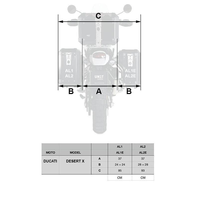 los modelos Ducati DesertX. Se integran perfectamente con el resto de la moto. Preparado para alojar nuestras bolsas de aluminio en diferentes tamaños. Viene completo con kit de montaje y tornillos. Se puede montar en la moto en combinación con nuestros accesorios