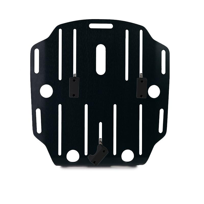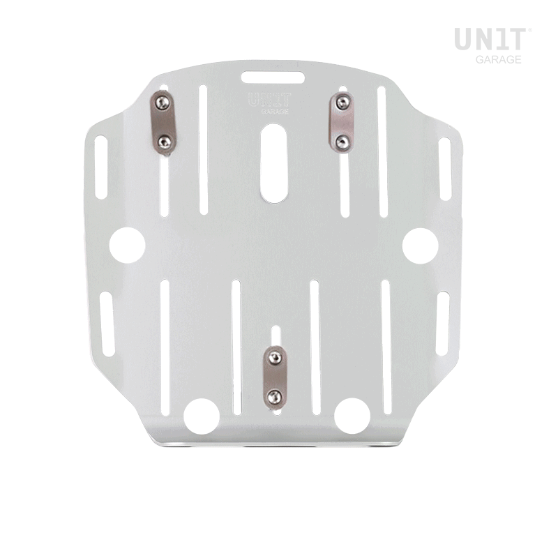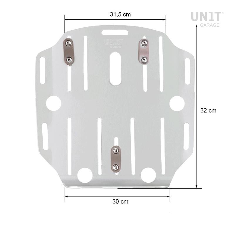 Placa de aluminio anodizado completa con pernos en U y tornillos. La placa se puede sujetar muy rápidamente a cualquier marco de tubo para bolsas de aluminio con los 4 pernos en U suministrados, creando una superficie de montaje plana en el costado de la bicicleta, esto permitirá el transporte de varios tipos de equipaje, por ejemplo, saco para dormir , carpa, bolsas o rollos de varios tamaños. Es compatible con todos los sistemas de tubos OEM y del mercado de accesorios del mercado. La placa con atención a los detalles más pequeños, está equipada con varias ranuras para fijar bandas o correas.