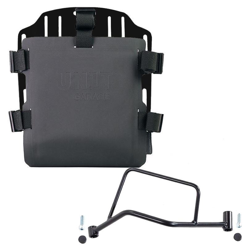 Placa portabolsas de aluminio anodizado con frontal ajustable en Hypalon. Se adhiere rápidamente a nuestros marcos de portabolsas con el código de sistema de liberación rápida U000 ya incluido y montado en la parte posterior de la bolsa. La placa, que está provista de un bloqueo para bloquear en el propio marco. La placa crea una superficie de montaje plana en el costado de la bicicleta, esto permitirá el transporte de bolsas sueltas u otros objetos, como sacos de dormir, chaquetas, etc. La solapa frontal, con atención a los detalles más pequeños, con acabados de Hypalon, se puede ajustar mediante los deslizadores suministrados y se puede quitar muy rápidamente de la placa.