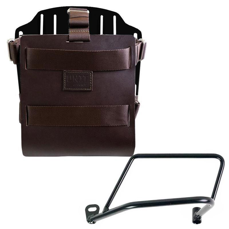 Portabolsas de aluminio con frontal de cuero ajustable, enganche rápido y marco izquierdo
