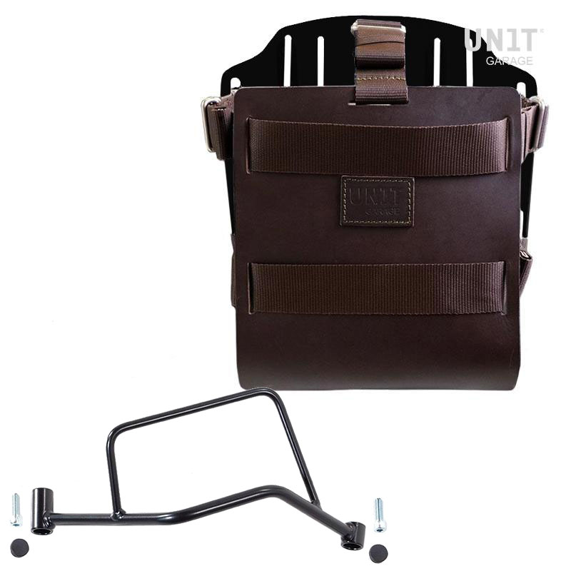 Portabolsa en aluminio con frontal de cuero ajustable, enganche rápido y marco derecho