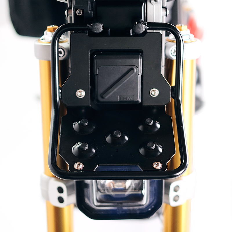 Fabricado en tubo de acero con acabado en polvo epoxi negro, se suministra completo con placa de aluminio con tacos de goma antideslizantes. Este elegante complemento permite fijar en la parte delantera objetos, chaquetas o pequeños bolsos. ¡Viene listo para montar, se fija con los tornillos suministrados y remata el frente maravillosamente!