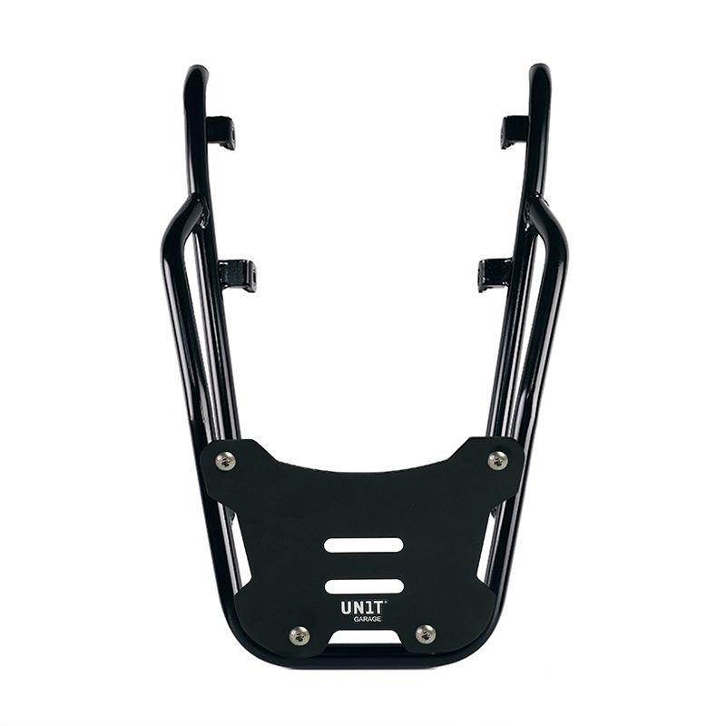 Completa la parte trasera y está equipado con cómodas asas para el pasajero. Robusto y práctico, puede alojar tanto la placa codificadora: U108 como la placa codificadora: AL3 para el topcase de aluminio mediante las 4 fijaciones suministradas. Excelente también para tener más superficie de carga para bolsas blandas mediante el montaje de la placa Código: AL13 En esta versión se propone con acabado en polvo epoxi de alta resistencia en color negro mate.
