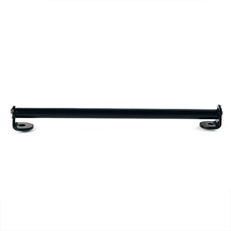 Este soporte de acero con recubrimiento de polvo epoxi le permite montar nuestras bolsas y rematar perfectamente el área del paso de escape alto en el panel lateral.