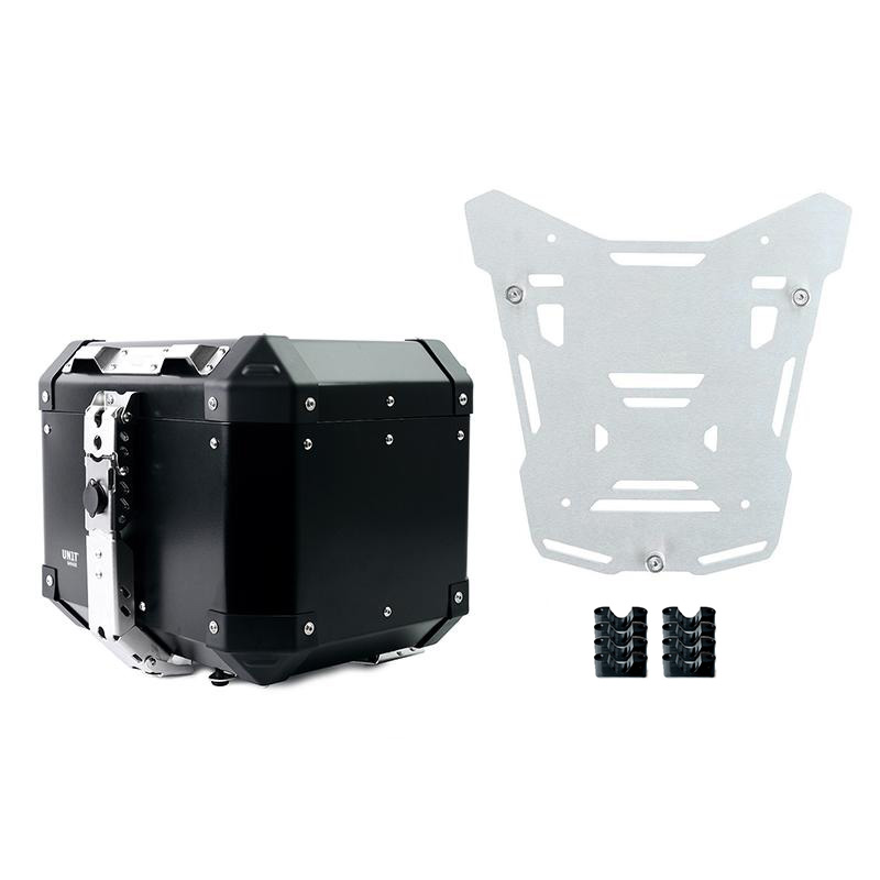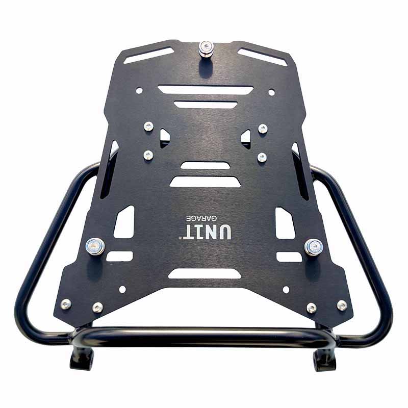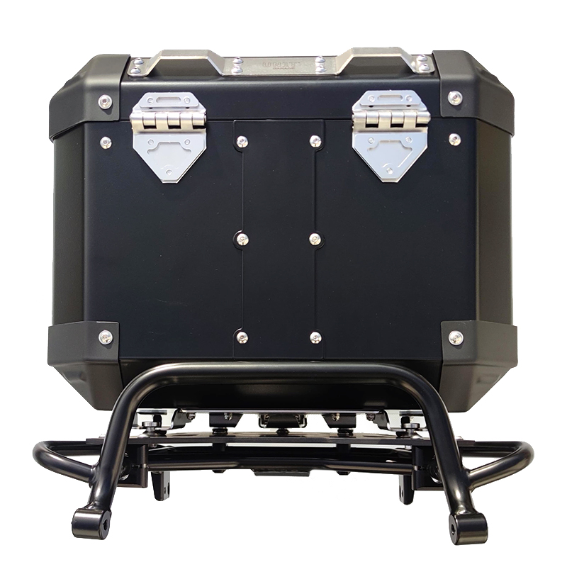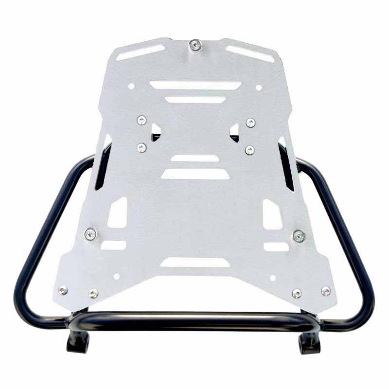Fabricado en aluminio anodizado negro o plata, permite el montaje de nuestro top case código: AL15_BL en el portaequipajes código: 1215 del Kit BMW R120GS. Se suministra completo con todo lo necesario para el montaje.