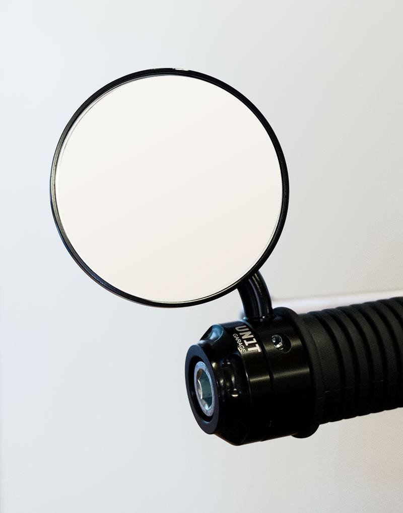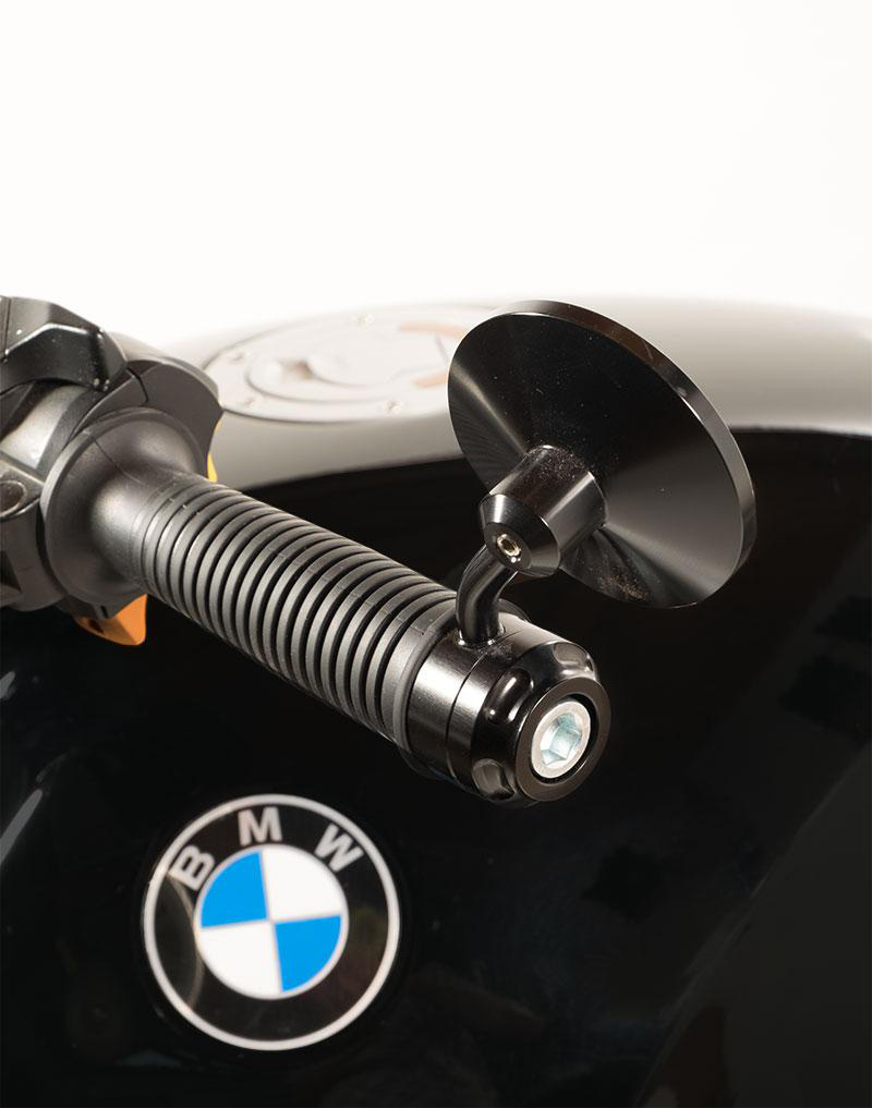 Espejo en aluminio anodizado negro construido ad-hoc para el nineT.