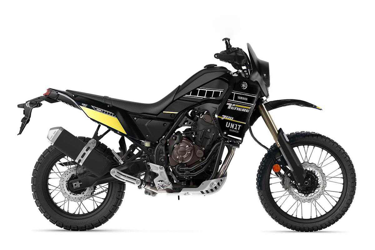 Juego completo de pegatinas protegidas con una película especial resistente a los rayos UV. ¡Queríamos un look minimalista y puro! Estas pegatinas, creadas tanto para los carenados originales como para nuestro KIT Classic, se pueden aplicar en pocos minutos y completar el look de tu Yamaha Ténéré 700.