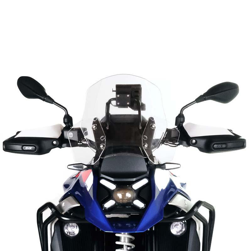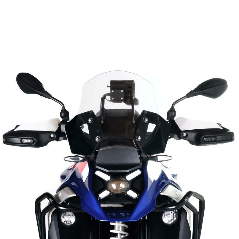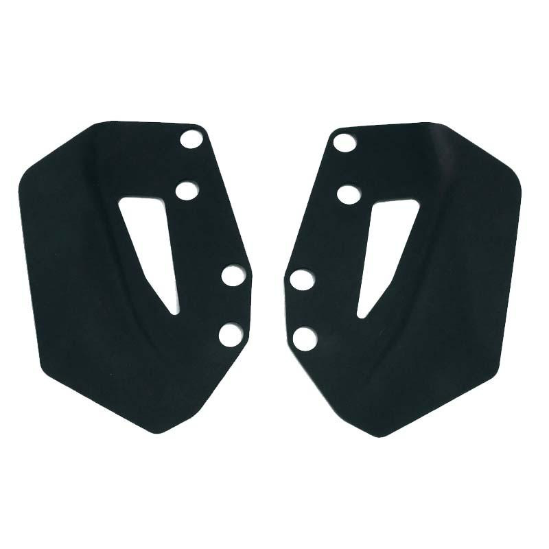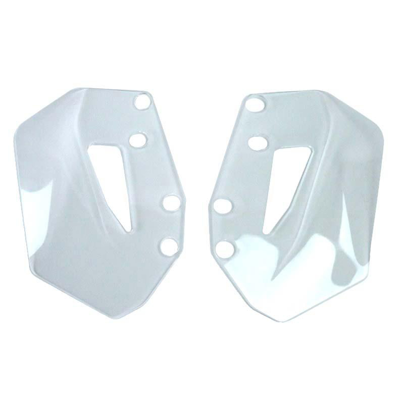 Par de deflectores laterales, Modelo grande (dimensiones mayores que los originales). Se pueden montar rápidamente sin ninguna modificación, todo lo necesario se suministra en el kit de montaje. No alteran el diseño de la moto pero son realmente muy eficaces ofreciendo una gran protección adicional.