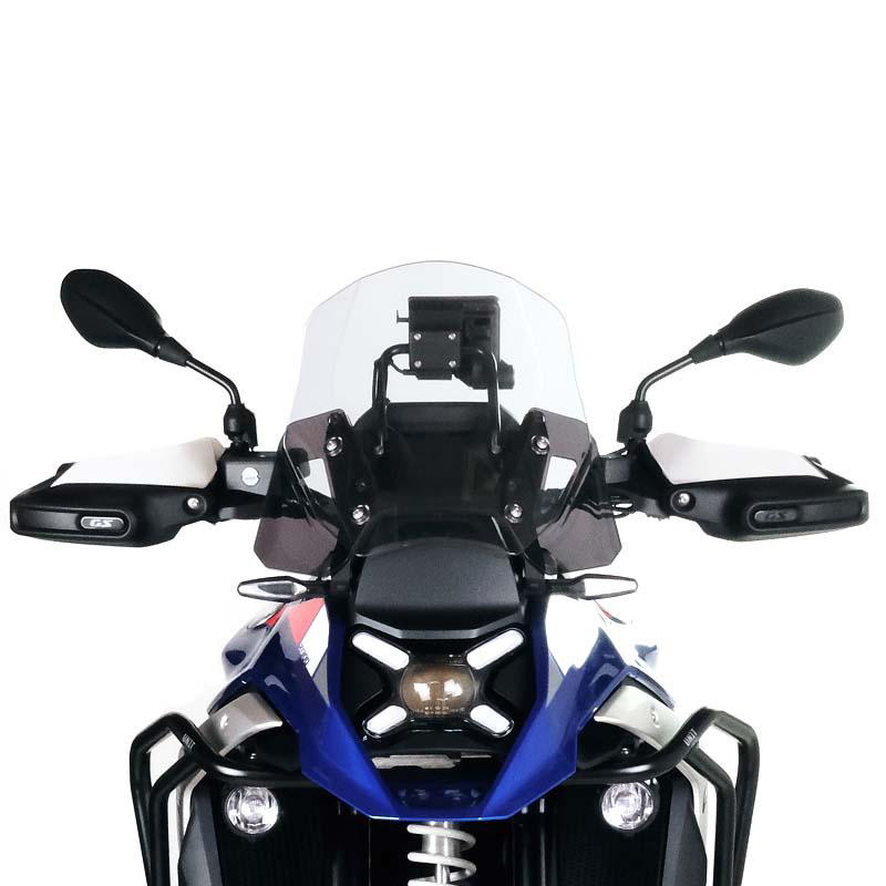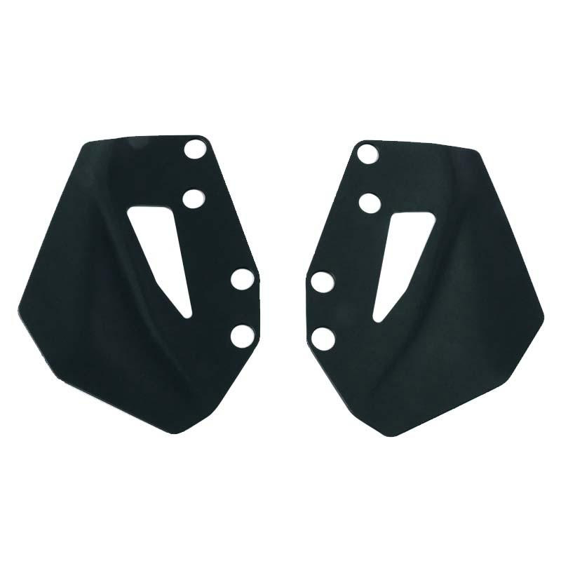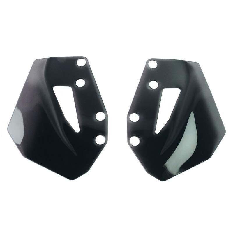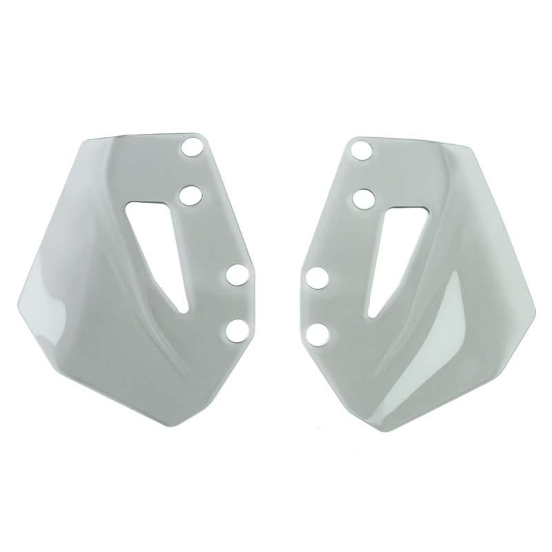 Par de deflectores laterales, modelo Mediano (mismas dimensiones que los originales). Se pueden montar rápidamente sin ninguna modificación, todo lo necesario se suministra en el kit de montaje. No alteran el diseño de la moto pero son realmente muy eficaces ofreciendo una gran protección adicional.