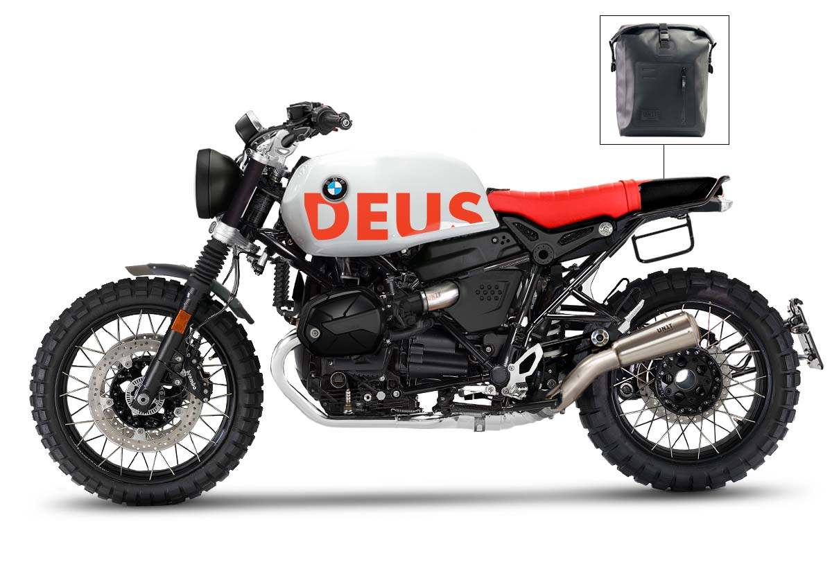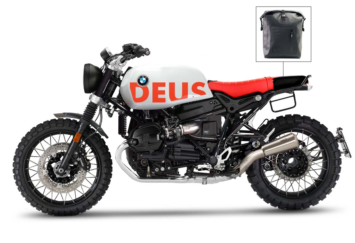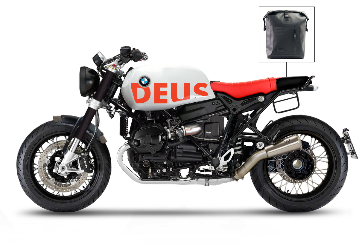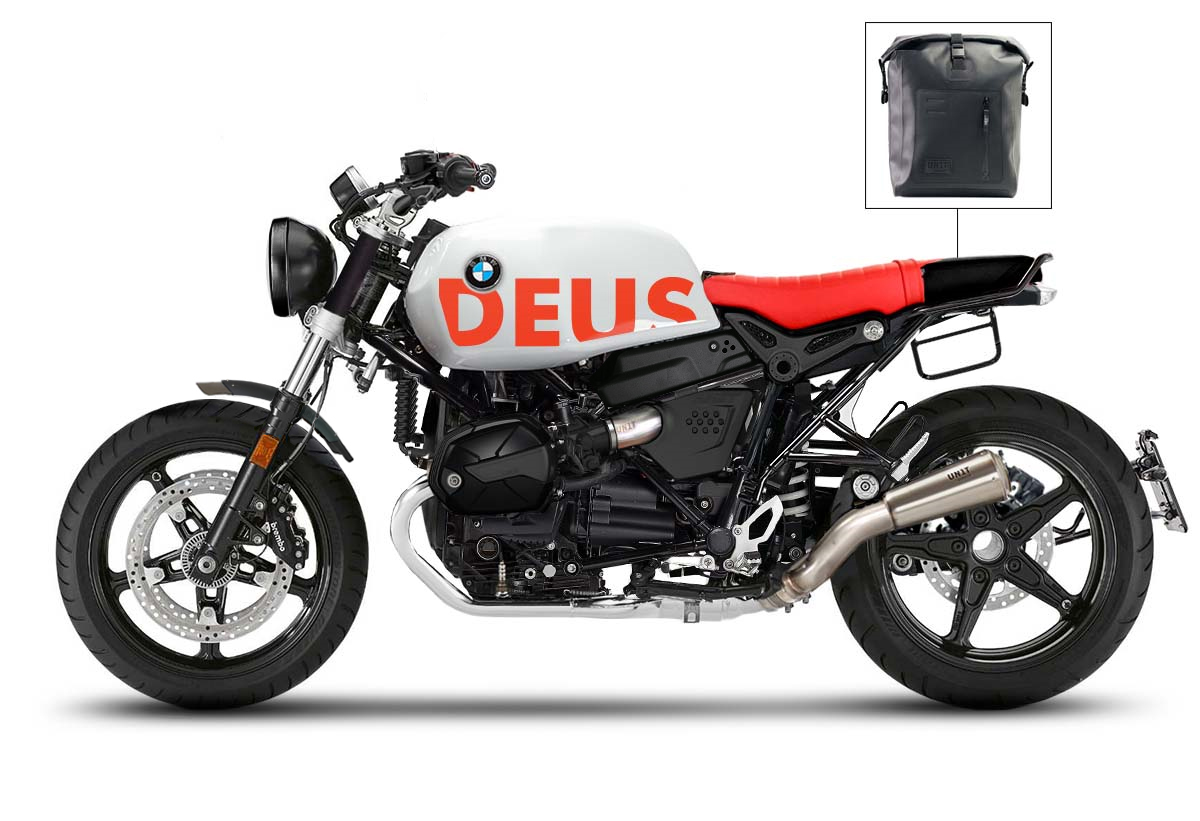 Se monta en el lado derecho de la motocicleta. Diseñado para la serie NineT, se integra perfectamente con el resto de la bicicleta. Listo para acomodar nuestro sistema de fijación rápida, hermoso y minimalista incluso cuando la bolsa no está montada.