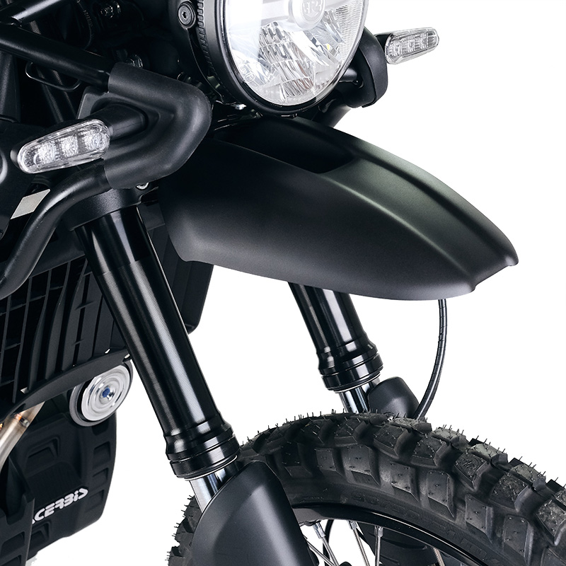 NB: este KIT le permitirá transformar su Himalayan 450 como la moto de la foto, el kit de tubería de freno necesario para quitar el guardabarros delantero bajo NO está incluido en el KIT y se puede comprar por separado (código 3822).